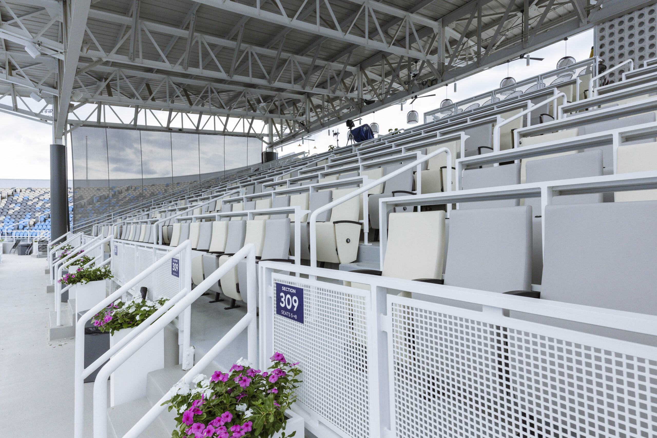 - General admission seating with shaded outdoor viewing overlooking Grandstand CourtÂ