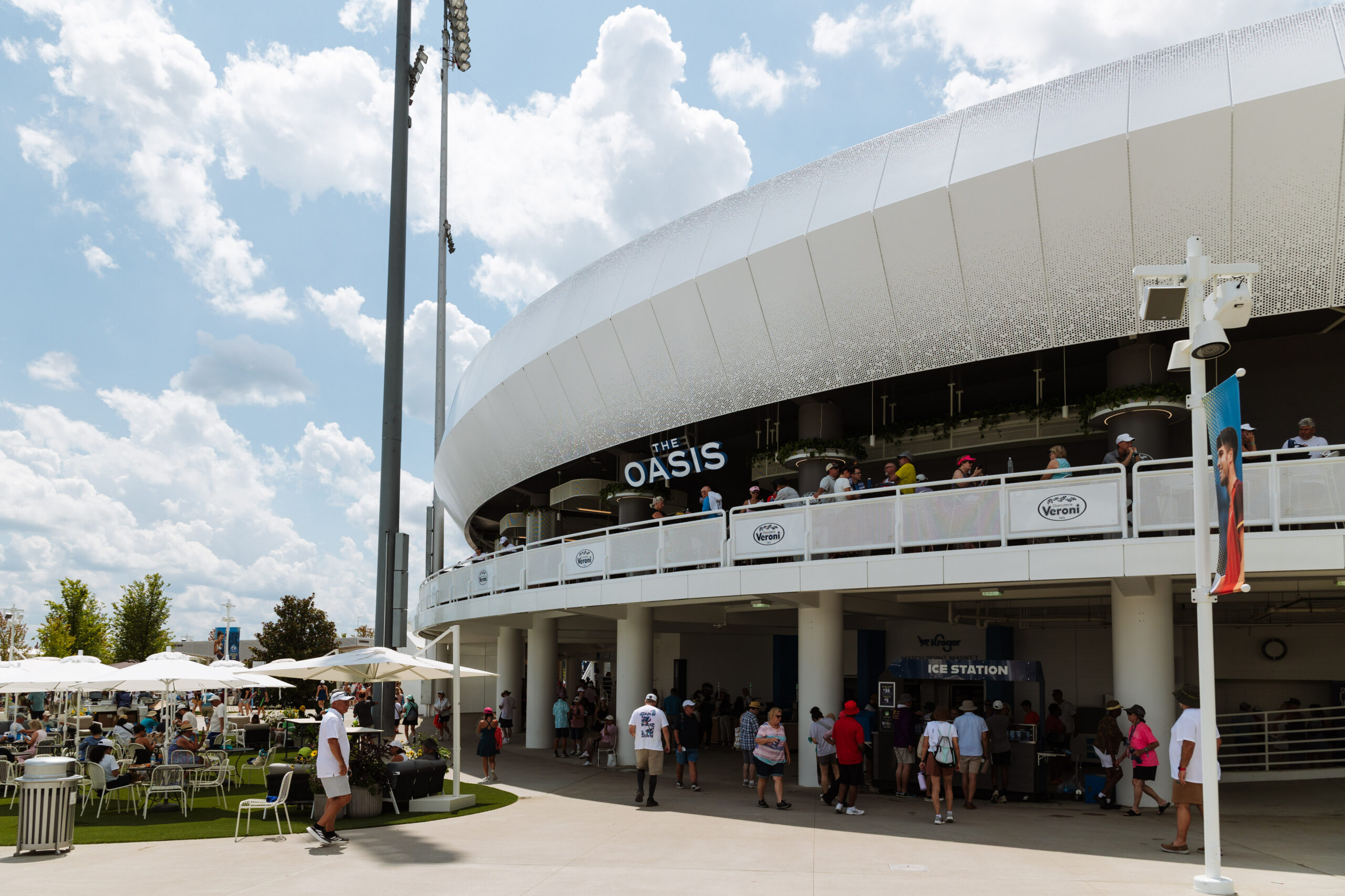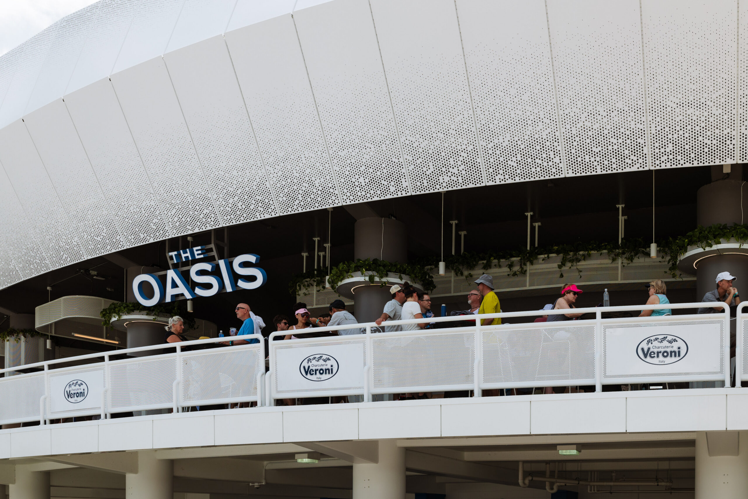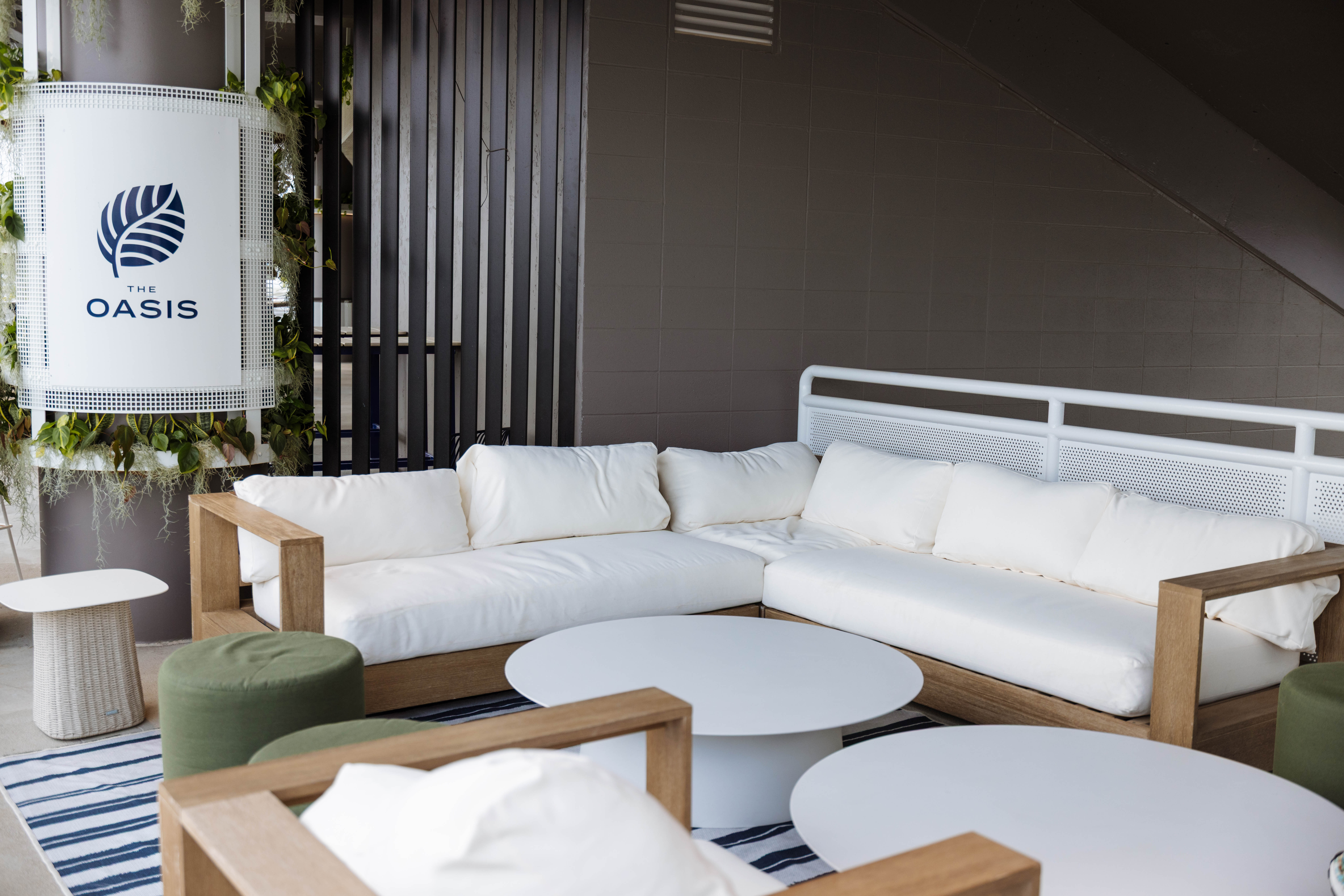 The Oasis is a stylish, openair lounge experience located in the northeast corner of Center Court, offering a relaxed yet elevated setting inspired by coastal Italy. Reserved for ticketholders in sections 209–211, the Oasis blends modern design, curated Italian flavors, and seamless access to the action.Â